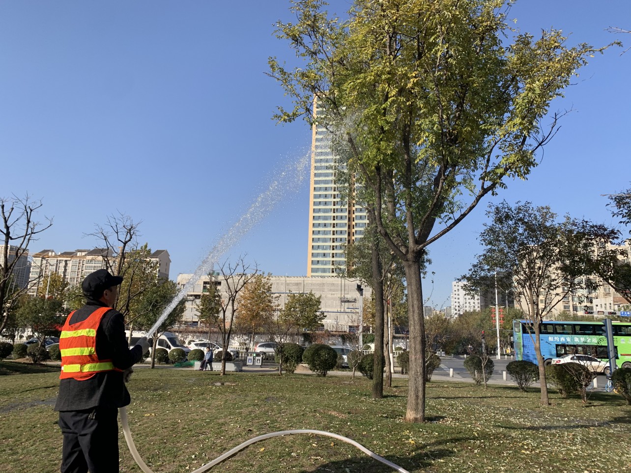 根据经开区管委会及经发集团工作要求,为做好冬季治污减霾工作,确保辖区内空气质量,营造绿色清新环境,入冬以来,西安经发景观采取有力举措,加强责任范围内环境保护,开展各项重污染天气应急响应措施,切实做好增绿治霾、绿带冲洗、扬尘防治等工作,将治污减霾各项措施落实到位。